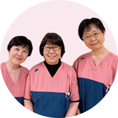 京都府立医科大学附属病院 栄養管理部 管理栄養士 写真左から岡垣 雅美 先生、居出 香先生、小栗 緑先生