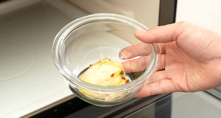 冷蔵庫から(9)を取り出して皿に盛り、(10)をかける。