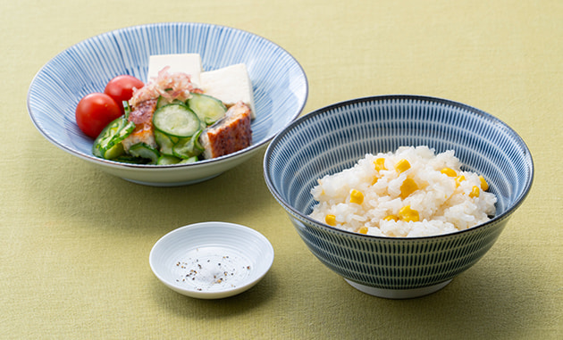 きゅうりは水分をしっかりしぼる、みょうがは水にさらす、生のとうもろこしではなく缶詰を使うとそれぞれカリウムが減らせます。