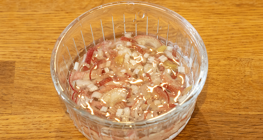水気をしっかりしぼり捨て、(5)と和えてうざくにする。