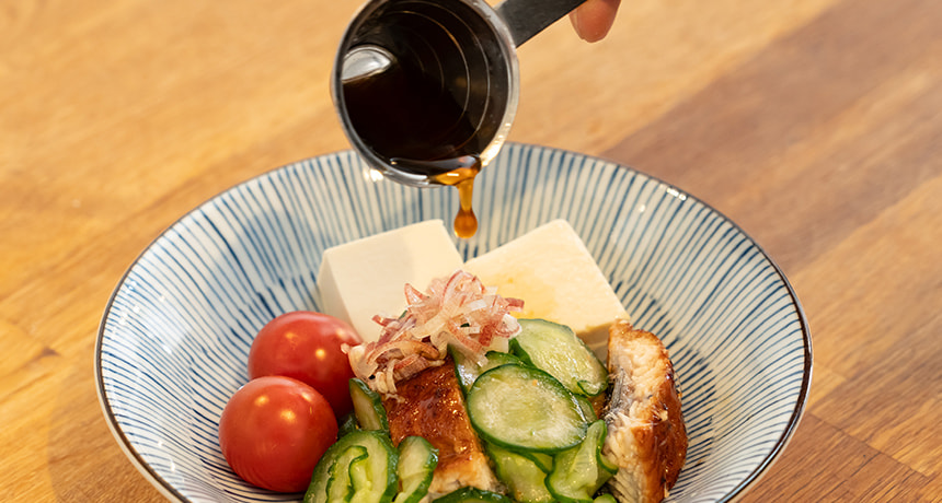 食べる直前に、ポン酢小さじ1(1人分)を回しかける。