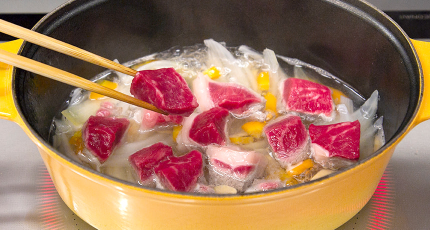 ルーを入れて溶かし、時々かき混ぜながら10分煮込む。